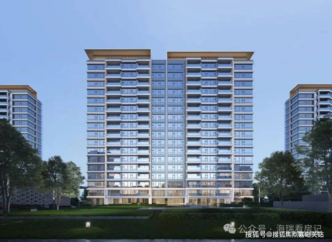 外立面的高窗墙比也是拉满,让通盘修立更具有通透性,带来超宽屏的视觉挫折;值得一提的是,阳台及主体窗的外轮廓还采用了34°斜切角治理,浅米色及暗金色铝板组合成艺术范“镜框”,与蓝灰色玻璃酿成内幕比较。